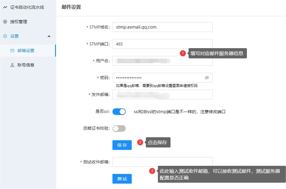 申请证书->部署证书->设置定时执行->设置邮件通知