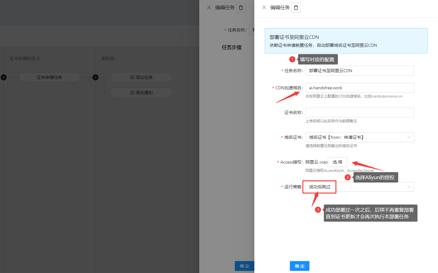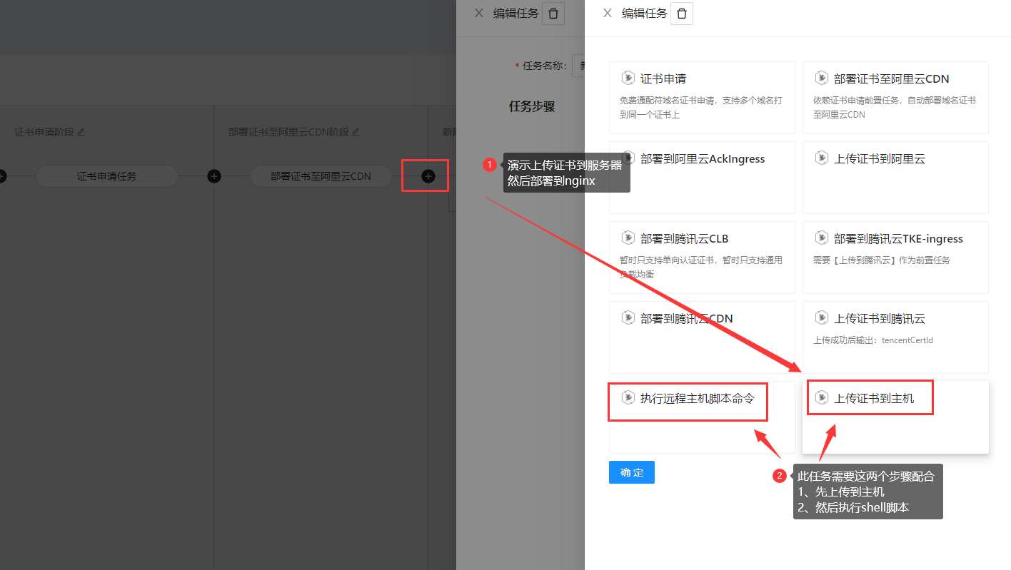 本示例演示从创建证书申请任务到自动部署证书全流程