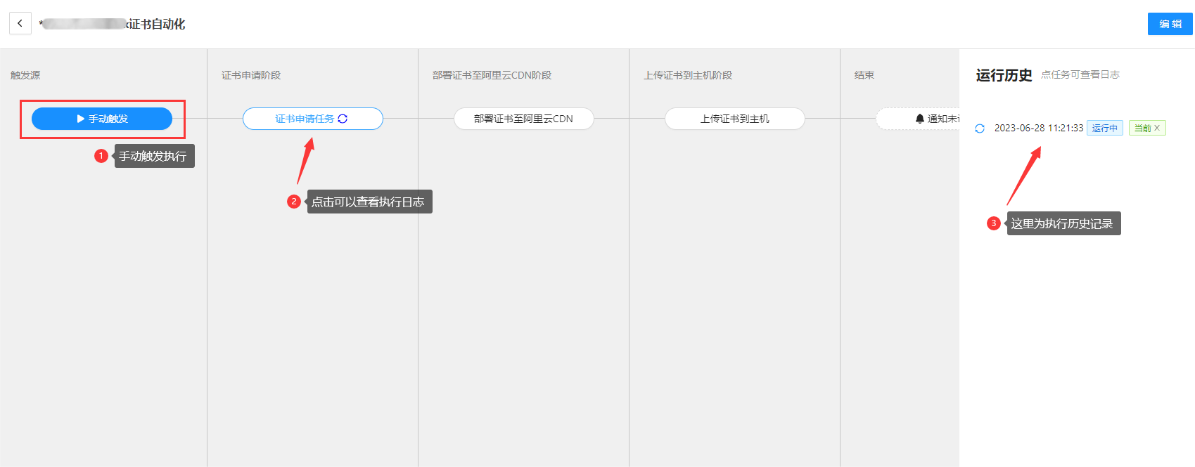 到这一步申请证书就已经配置完成了。 点击手动触发,就可以申请证书了。