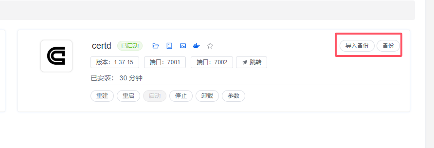 安装新Certd后,点击导入备份按钮,选择上面备份的文件即可