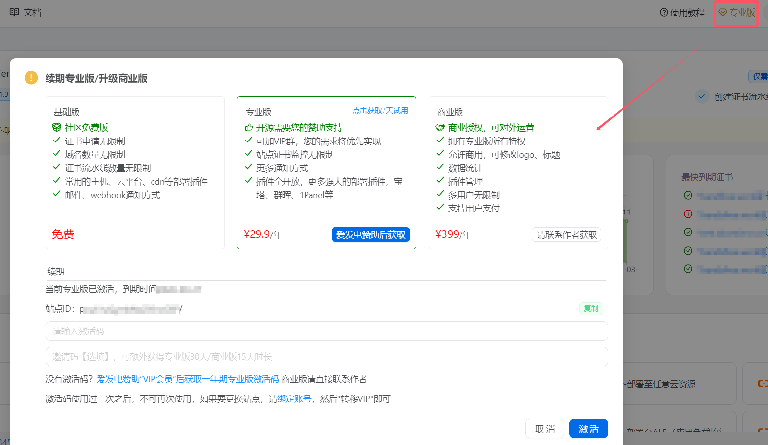 | 站点证书监控 | 限制1条 | 无限制 |